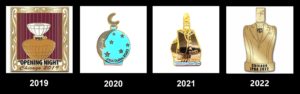 We’re starting with prior year convention pins, $15 each.