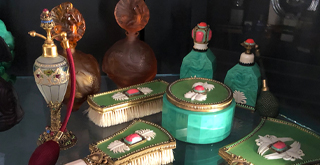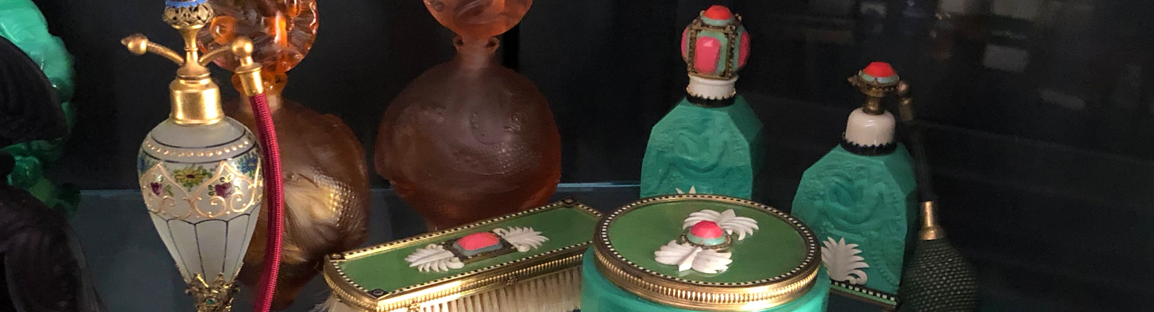 Initially, you should contact the Archivist. She/he can help you with identification, history, etc. and direct you to research sources. If you have a question about a specific bottle or vanity item, it will be helpful to send a quality photo.
